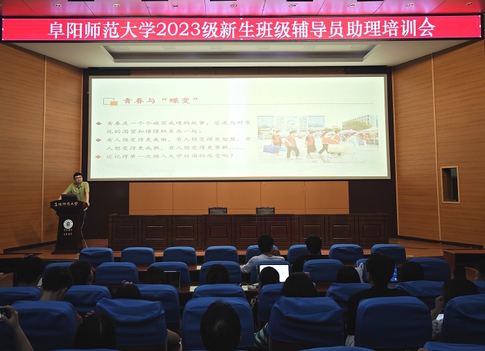 会上,学生工作处董淳一围绕新生班级辅导员助理的角色定位、工作职责、工作要点三个方面进行了详细解读。会议指出,新生班级辅导员助理作为辅导员的得力助手,要明确角色定位,加强学习交流,充分发挥朋辈引领作用,搭建好老师与学生之间的桥梁,以饱满的热情为新生尽快适应大学生活打下坚实基础。会议要求全体新生班级辅导员助理要心存敬畏、行有所止,加强学习、做好表率,主动担当、甘于奉献,以实际行动践行新时代青年大学生的责任与担当。